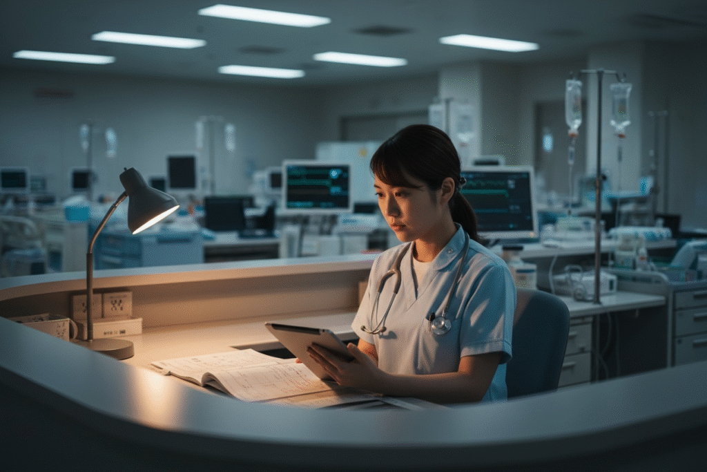 2018年4月、私は都内の総合病院「聖和医療センター」の救急外来に看護師として就職しました。28歳の私にとって、救急医療の現場は想像以上に過酷で、命に関わる決断を毎日迫られる職場でした。特に深夜勤務では、重篤な患者が搬送されることが多く、時には最期の瞬間に立ち会うこともありました。そして、その業務を通じて、私は医学では説明のつかない不可解な現象を何度も目撃することになります。意識不明の重体患者が、繰り返し「あの人がまた来た」と呟き続け、病室の特定の場所を見つめ続ける現象です。医師団は譫妄(せん妄)と診断しましたが、同様の症状を示す患者が過去にも複数存在し、全員が同じ場所を見つめていたことが後に判明しました。