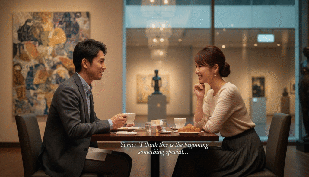 3回目のデートは六本木の美術館でした。現代アートを鑑賞しながら、二人の会話はより深いものになっていました。カフェで休憩している時、由美さんがふと切り出した話題が、全ての始まりでした。