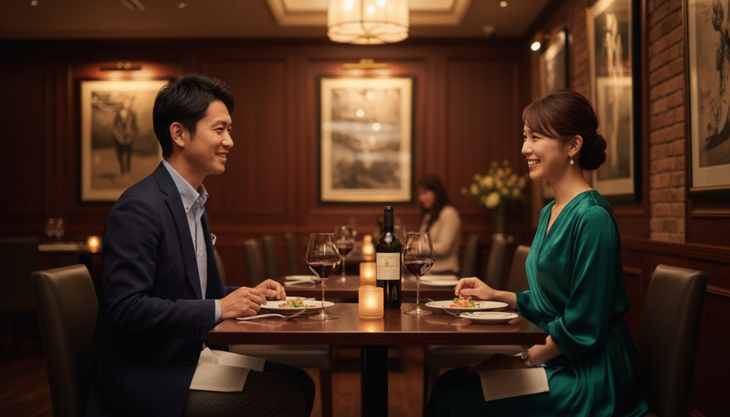 初デートの場所は表参道の老舗イタリアンレストラン。山本さんは30分も前に到着し、緊張しながら由美さんを待っていました。約束の時間ちょうどに現れた由美さんは、写真以上に美しく、上品な佇まいでした。