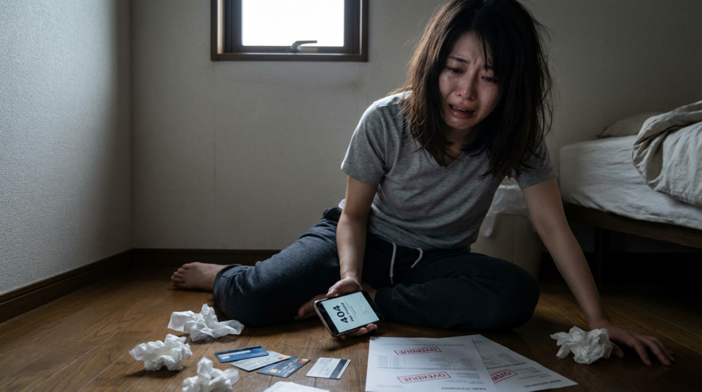 美咲はその場に崩れ落ちた。愛していたはずの彼も、将来のために投資したお金も、すべてが幻だったのだ。残ったのは、消費者金融と親への莫大な借金だけだった。