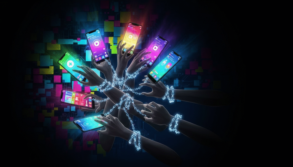 この体験を通じて、私は現代のデジタル社会が抱える深刻な問題について深く考えるようになりました。スマートフォン、SNS、ゲーム、配信アプリなど、私たちの身の回りには依存を誘発する技術があふれています。これらは意図的に依存を引き起こすように設計されているのです。